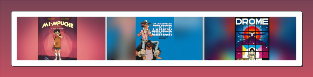 2 FILLES NUES de Luz ; MARCIE de Cati Baur ; TRILOGIE ITALIENNE, LES JARDINS INVISIBLES, LA SOLIDITE DES REVES d’Alfred ; PLOUHERAN : A VELO, DE LA BRETAGNE A L’IRAN d’Isabel Del Real ; 1629 de Xavier Dorison et Thimothée Montaigne ; ULYSSE ET CYRANO de Xavier Dorison et Antoine Cristau ; SERGIO LEONE / SPIELBERG par Amazing Ameziane