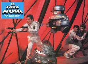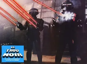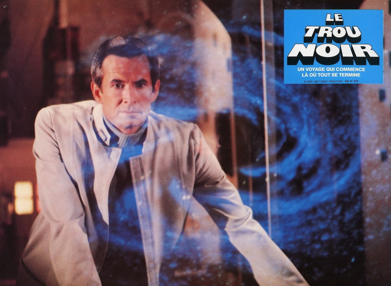 LE TROU NOIR est un film américain des studios Disney sorti en 1979, réalisé par Gary Nelson, (UN VENDREDI DINGUE, DINGUE, DINGUE (FREAKY FRIDAY)), avec des effets spéciaux de Peter Ellenshaw (oscarisé pour MARY POPPINS) et une musique de John « JAMES BOND » Barry, avec Maximilian Schell, Anthony Perkins (PSYCHOSE), Ernest Borgnine (LA HORDE SAUVAGE, et, oui, SUPERCOPTER…), Robert Forster (JACKIE BROWN), Timothy Bottoms, Yvette Mimieux (LA MACHINE À EXPLORER LE TEMPS), et les voix pour les robots de Roddy McDowall (LA PLANÈTE DES SINGES) et Slim Pickens (DOCTEUR FOLAMOUR)