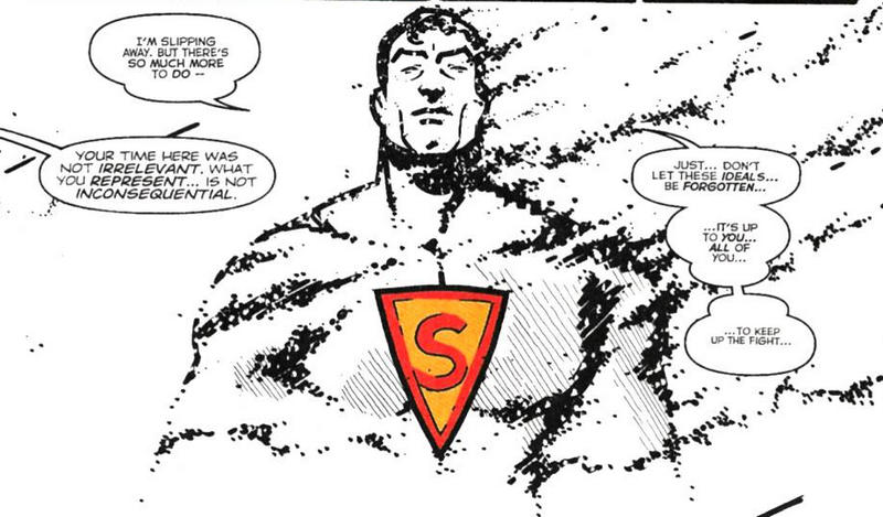 Mais ADVENTURES OF SUPERMAN n°610 s’attache également aux traditions plus récentes. Après Crisis on Infinite Earths, SUPERMAN n°64 montre que le héros éponyme lit le courrier envoyé par des milliers d’anonymes et, lorsqu’il le peut, les aide. Dans les 2 numéros, Superman reçoit notamment l’appel à l’aide d’un enfant dont le père est mourant, et se rend sur place pour réconforter l’enfant et lui faire comprendre qu’il n’est pas tout puissant. Si dans SUPERMAN n°64, le héros fait en sorte que la mort du père ne soit pas vaine, son rôle dans ADVENTURES OF SUPERMAN est purement empathique : il partage avec l’enfant la douleur d’être orphelin et l’aide à réaliser qu’il n’est pas seul.