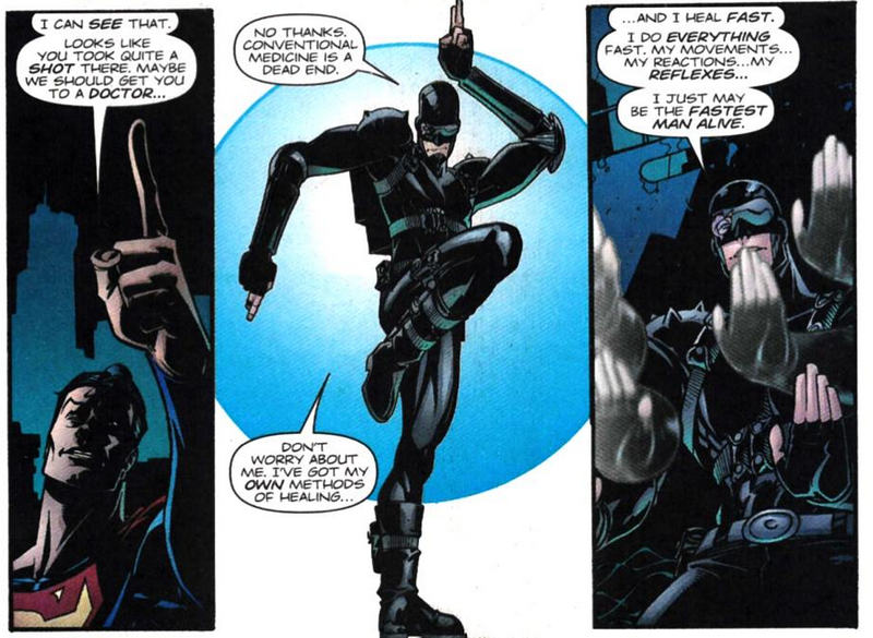 J’ai également trouvé le diptyque suivant décevant. Dans ADVENTURES OF SUPERMAN n°621 et 622, Superman fait la rencontre d’un nouveau superhéros, un énergumène dont la puissance est basée sur la réflexologie et l’acupuncture. Malgré sa bizarrerie et l’absurdité de la menace qu’il affronte (un mariage d’êtres interdimensionnels qui ont choisi la Terre pour consommer leur nuit de noce !), ce Minuteman parvient à donner une leçon d’héroïsme à Superman en se sacrifiant pour contrer cette menace. J’ai honnêtement eu l’impression d’un regard amusé de Joe Casey sur les héros conceptuels à la Grant Morrison, en s’adonnant à une tendre parodie.