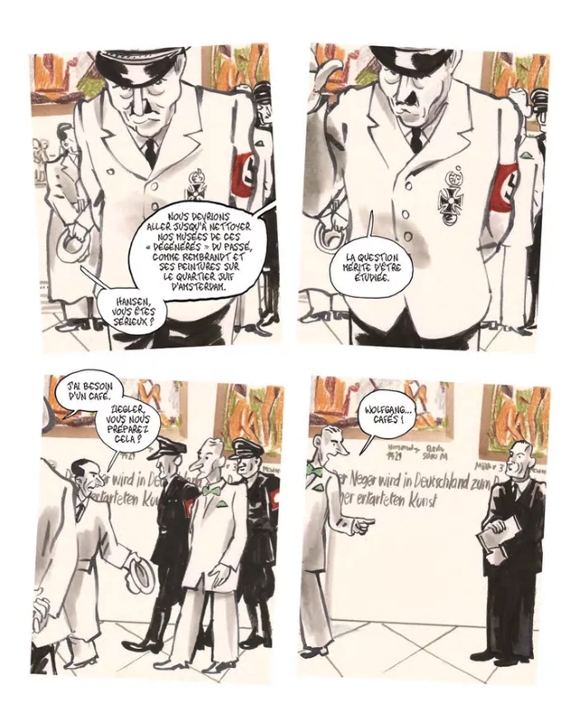 Toujours fin observateur de l’actualité, Luz remet au gout du jour des notions oubliées à l’instar de cet art dégénéré. Car même s’il a au départ essentiellement viser à écarter les œuvres juives, l’adjectif dégénéré visait bien au-delà : les pd, les gitans, les bohèmes, les marginaux, les noirs, les LGBTQIA+ … non cela c’est aujourd’hui. Le parcours de ce tableau illustre l’un des plus vieux débats du monde, sur l’art et la critique et sur qui décide ce qui est beau ou pas, si n’est l’art d’imposer sa vision du monde et de la société. Alors les nazis ont décidé pour l’humanité tout comme maintenant les populistes tentent d’imposer leur point de vue.