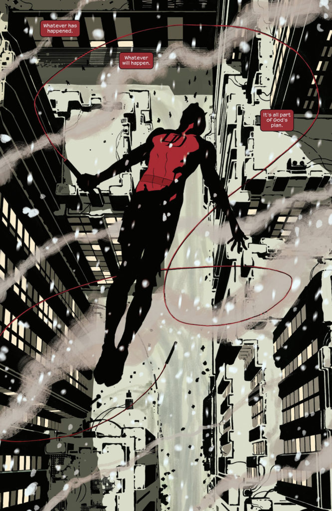 Si les voies du Seigneur sont impénétrables, la voix donnée à DD par le scénariste est des plus fluettes, ce qui tint JP à distance de cet homme sans peur qu’il ne reconnaissait pas vraiment. Le dénouement de l’intrigue ne lui procura aucune satisfaction, même si sur l’échelle ouverte du foutage de gueule scénaristique, ce récit n’atteignait pas le niveau du MAPONE de DAREDEVIL : END OF DAYS ni l’indigence azuréenne du run de Saladin Ahmed. Niveau arnaque, ces dernières années, être lecteur de Daredevil, c’est avoir les voies pénétrables.