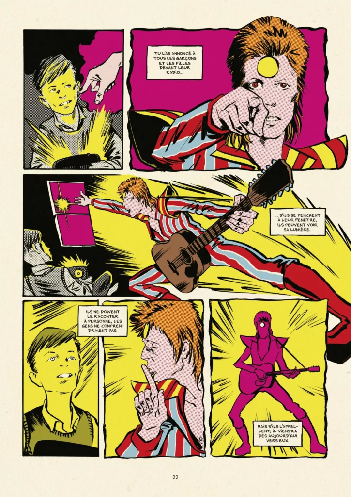 J’ai choisi deux sujets principaux, l’époque de Ziggy Stardust et le temps qu’il passe à Berlin. À travers les flashbacks, j’ai pu établir des relations plus étroites entre son passé et le présent de la narration. Par exemple, ce qu’il vivait à L.A. définissait ses actions à Berlin. Les rapprocher dans la narration donne au lecteur une image plus profonde de sa pensée.