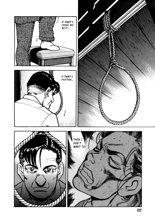 Lorsque Takeda ( le nom de gros pif ) retrouve le tueur, ses intuitions  ne sont pas suffisantes pour obtenir une condamnation. Takeka doit donc obtenir ses aveux  avant que le délai de prescription du crime n’arrivent à leur terme avant la fin de la nuit . A l’inverse de ce que pourrait laisser à penser la couverture, notre héros au gros pif , n’envisage la violence que l’espace de deux pages. Le reste du temps, il s’agit de dialogues courtois mais tendus entre un père endeuillé et le criminel de sa fille.