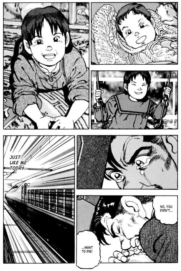 Quelle idée géniale ! Si le cinéma rengorge de film où les héros empoisonnés doivent trouver une solution avant de mourir, le traitement plus versé sur l’introspection que dans l’action virile est assez bouleversant. On pourrait facilement décrire Seizon comme le thriller que Taniguchi n’a pas écrit tant tout est prétexte à l’exploration de la nostalgie de la vie en famille, et de l’aliénation du travail qui transforme cette allégresse en paradis perdu…..