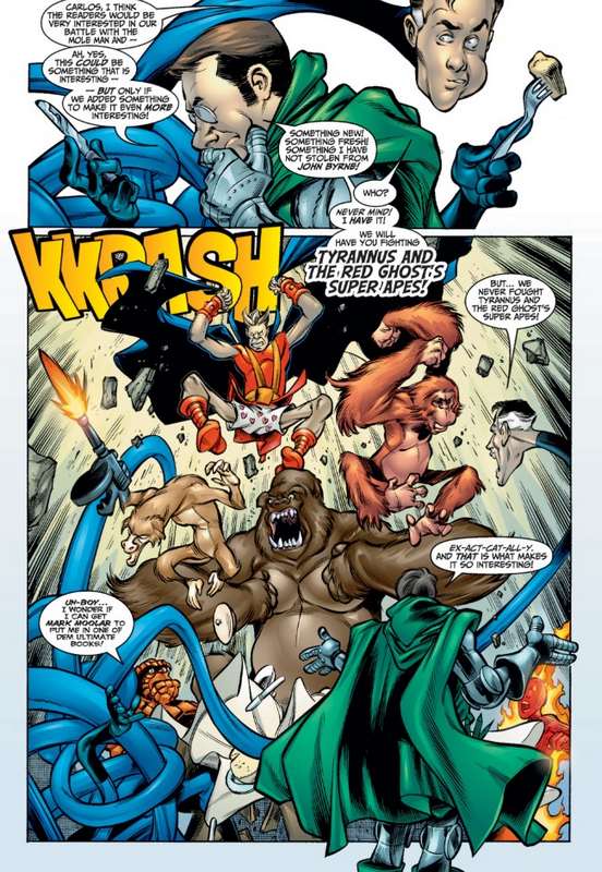 Fletcher : Tu touches là un point d’histoire méconnu. Raphael Marin, ibérique comme Carlos Pacheco, se sont exprimés là-dessus et notamment sur leur relation avec Bobbie Chase, leur éditrice. Engagés comme scénaristes, ils se voient obligés de réécrire plusieurs fois leur script car finalement leur éditrice connaît moins bien qu’eux l’histoire des FF. Cela ralentit leur production et arrive à freiner leur élan. Un exemple : La Chose devant fumer un cigare qu’un gars de Damage Control lui a offert. Chase n’est pas du tout d’accord, argumentant que c’est ridicule de montrer un personnage fait en pierre fumer. Que c’est mauvais pour la santé. Sérieux, un type comme la Chose, avec une santé de pierre et une capacité de récupération hors du commun. D’ailleurs Jeph Loeb sera engagé pour seconder les deux auteurs espagnols et notamment fluidifier la barrière de la langue. Au passage côté américain ils ne sont pas génés pour même modifier des dialogues déjà écrits, quitte à en modifier le sens.