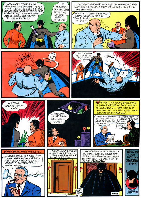 La réputation de “boy scouts” des héros DC et Marvel est d’autant plus amusante qu’elle ne reflète pas les débuts violents des personnages. Batman, dans ses premières aventures très inspirées (pour ne pas dire copiées) de The Shadow,  n’hésite pas à balancer ses adversaires dans l’acide (mauvaise habitude,ça). Dans Captain America Comics n°1, Bucky s’étonne de l’indifférence de Steve Rogers lorsque leur ennemi se suicide ! Mais les comics des années 39-40 reflétaient les craintes et la violence que suscitaient les débuts de la Seconde Guerre. L’Âge d’argent a apporté une certaine innocence aux personnages.