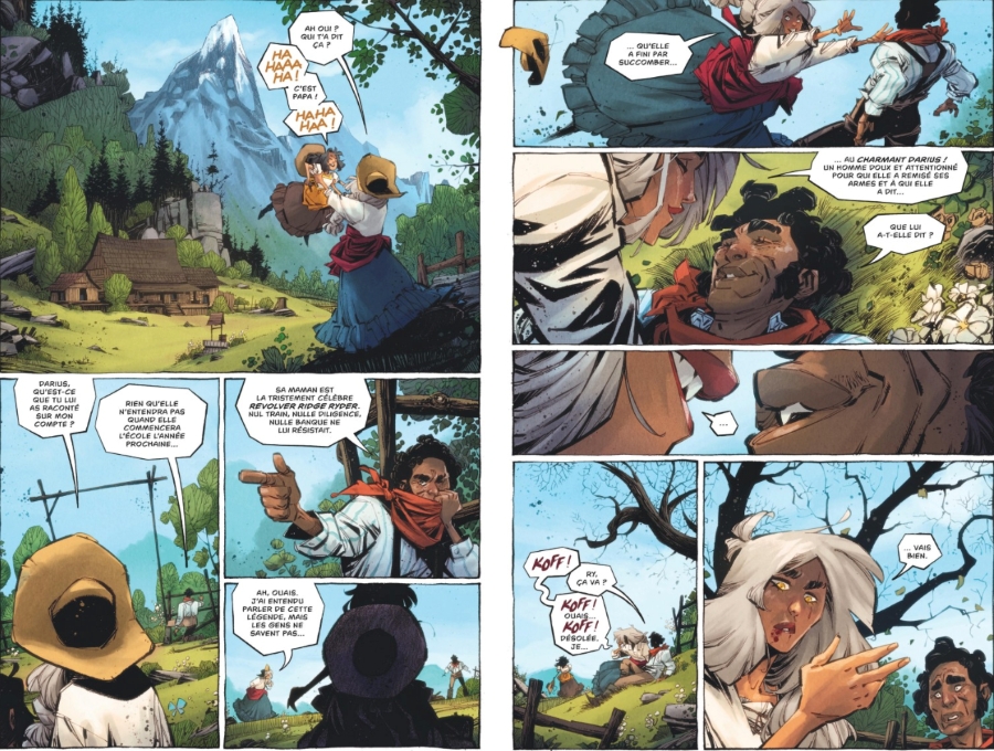 Il y a une énergie communicative dans les intentions de Jorge Corona avec des traits anguleux créant du mouvement, des décors et cases détaillés, un design travaillé, des exagérations notamment dans les vêtements des protagonistes, et enfin des visages très expressifs. La colorisation n’est pas en reste avec la vaste palette de couleurs chaudes qu’emploie Jean-François Beaulieu. Que cela soit pour renforcer l’ambiance western dans les différents paysages traversés ou pour accentuer l’atmosphère dramatique ou surnaturelle.
