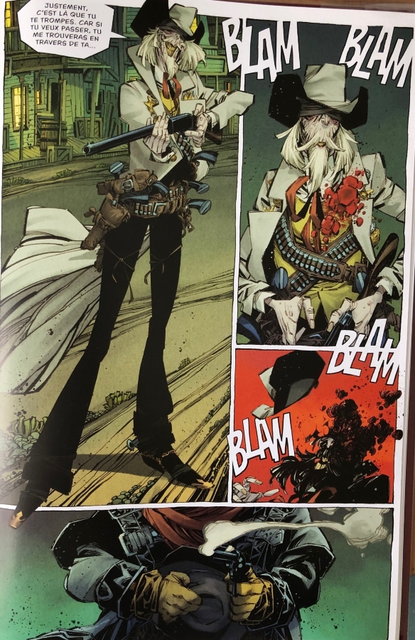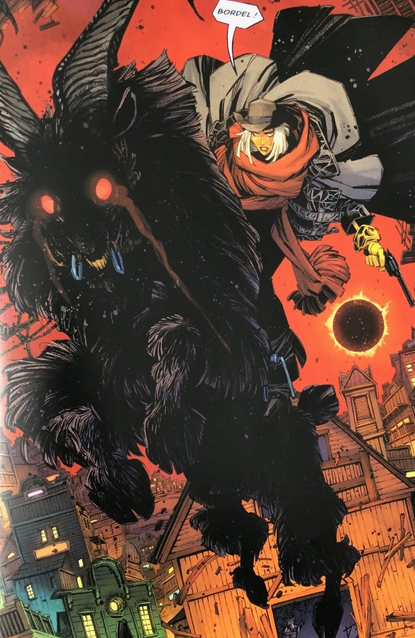 Visuellement les auteurs nous en donnent pour notre argent. On plonge rapidement dans l’atmosphère western annoncée que cela soit visuellement (plaines, déserts, montagnes) ou à travers les incontournables comme l’attaque de train, le saloon, les duels… Les fantômes, et autres esprits éthérés, la ville secrète où les créatures inhumaines rappellent sans problème la touche fantastique et surnaturelle.