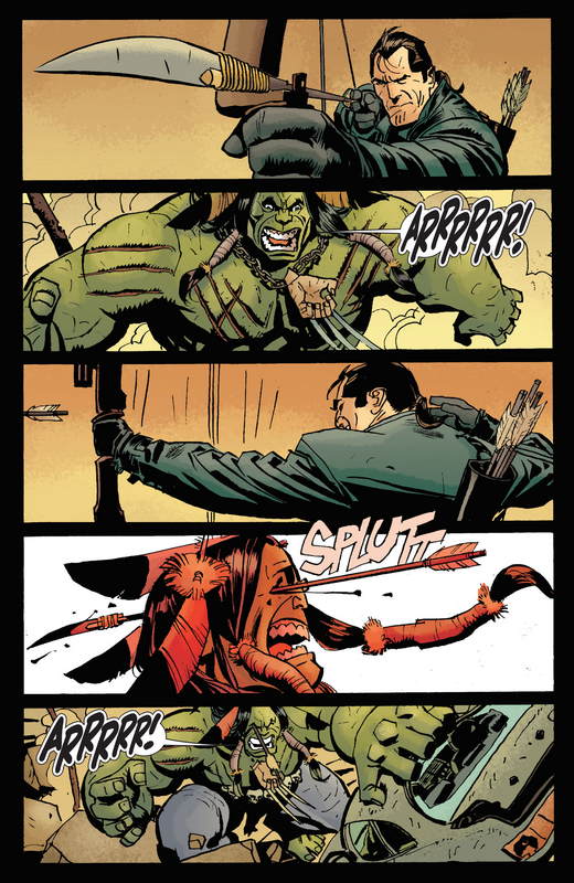 Mais l’approche horrifique de Maberry est également à noter. Contrairement aux titres Marvel Zombies, il évite les gerbes de sang, de tripes et autres chairs arrachées. L’horreur vient davantage de l’atmosphère. Le premier numéro est ainsi construit pour montrer la figure de traqueur de monstres qu’est devenu le Punisher, avec une ultime double-page mettant en avant son caractère barbare ! Le second met en scène la menace croissante du “Patient Zéro”, qui m’a un peu rappelé (toutes proportions gardées) l’arrivée de Negan dans THE WALKING DEAD, à travers plusieurs éléments : un cadavre laissé à l’abandon, un messager, des éléments visuels remplissant le paysage jusqu’à une prise d’otage.