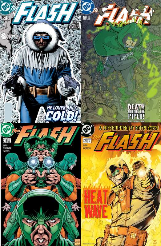 Cet article portera sur plusieurs épisodes de la série THE FLASH lancée en 1987, et faisant partie du run de Geoff Johns sur la série. Nous allons nous intéresser aux numéros 182, 190, 197, 212 et 218, chaque histoire se focalisant sur l’un des ennemis de Flash. Les artistes de ces numéros sont Scott Kolins, Justiniano, Steven Cummings et Peter Snejbjerg. L’encrage de ces récits est assuré par Dan Panosian, Walden Wong, Doug Hazlewood, Wayne Faucher et Peter Snejbjerg .
